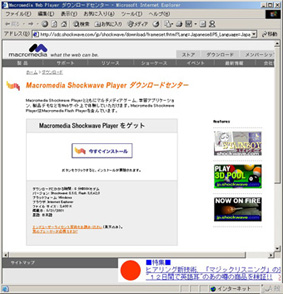 本CD-ROMはWindowsおよびMacintoshに対応したハイブリッド版ですが、Microsoft Windows95/98/Me/XP 日本語版以外での動作は完全に確認しておりません。 動作の不具合に関しての質問等は、 若林弘紀 hiroki@hockeylabjapan.com までお寄せください。 Apple社ホームページ http://www.apple.co.jp/ *QuickTime(TM)インストールの際はインストールの要領をよく読んでから行なってください。通常はインストーラーをダウンロードして保存した後、そのインストーラーを起動し、指示に従って残りのファイルをダウンロードします。ダウンロードにはかなり時間がかかります。 注:Windows Internet Explorer 5.5 SP2とWindows Internet Explorer 6.0 以降のブラウザではQuickTime(TM)プラグインが再生されない不具合があるようです。詳細情報は http://til.info.apple.co.jp/cgi-bin/WebObjects/ をご覧ください。 解決方法: http://www.apple.com/jp/quicktime/ にアクセスすればActive Xが自動的にダウンロードされ、インストールされます。ダウンロードの際に「セキュリティ警告」ダイアログが表示される場合、「はい」を選んでください。 Macromedia社ホームページ