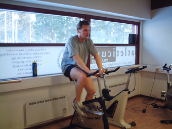 さて、ポディーンといえばNHLで約700試合を戦い、カップ獲得も果たしているツワモノです彼にNHLホッケーを聞かずして帰ることはできんぞということで、ジムでトレーニング中のポディーンにいろいろなことを聞いてみました。