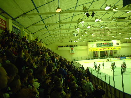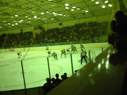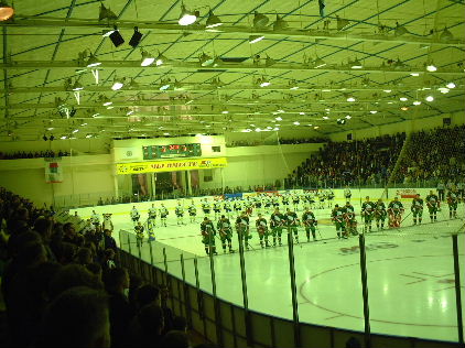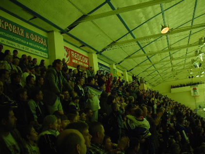 そして試合開始!いやーしかしこハバロフスクのお客さんは熱い熱い!!もう日本リーグで言うなら霧降のリンク状態です。いや、それ以上です。ちょっとでも惜しいシーンがあると全員が頭を抱えて悔しがり、ゴールが決まると「ハラーショ!!(すんばらしい!!)」と絶叫しながら総立ちに、、、これはすごい。ああ、この熱い応援の中で日本リーグが行なわれるチャンスが消えてしまったとは、、、残念です。