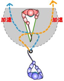バックハンド・シングルシフト(ブルーのライン)はその逆です。